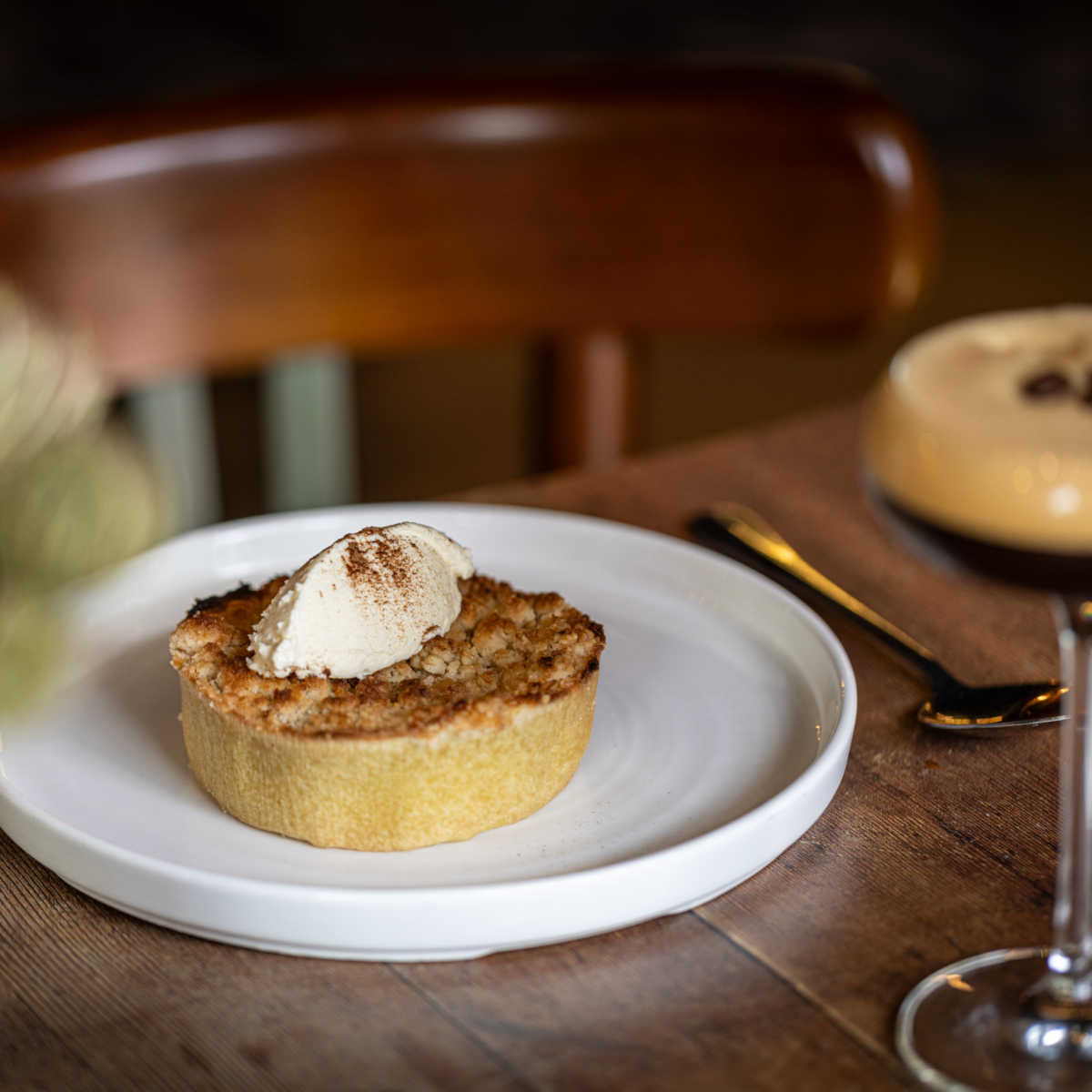 Apple crumble tart, cinnamon cream (v) (ve available) | 7.5 613 kcals