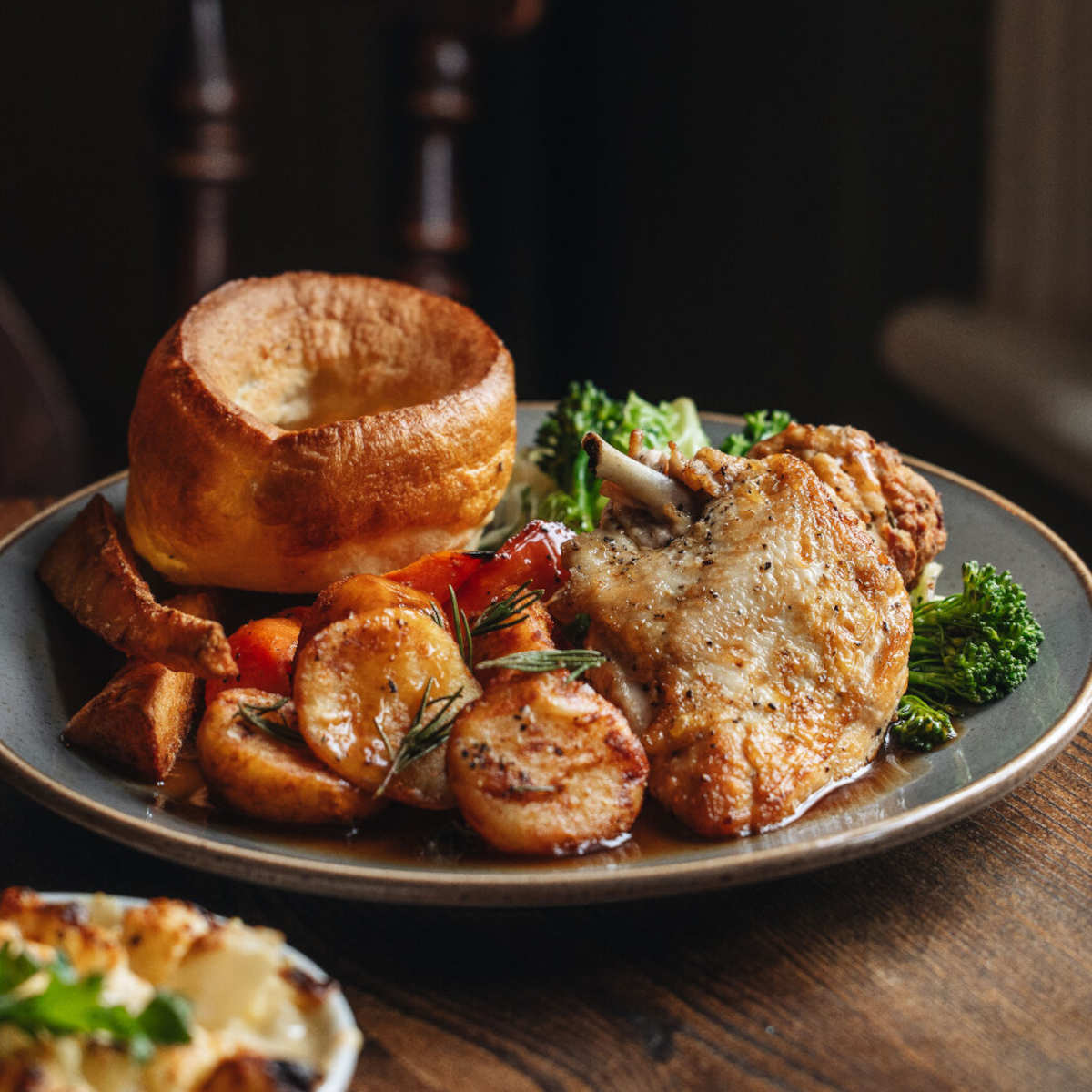 All served with roast potatoes, seasonal greens, roasted roots, Yorkshire pudding, beef dripping gravy